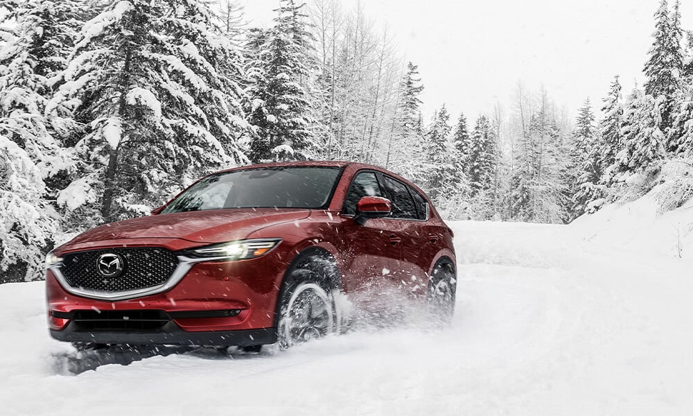 Mazda vehicle driving through snow
